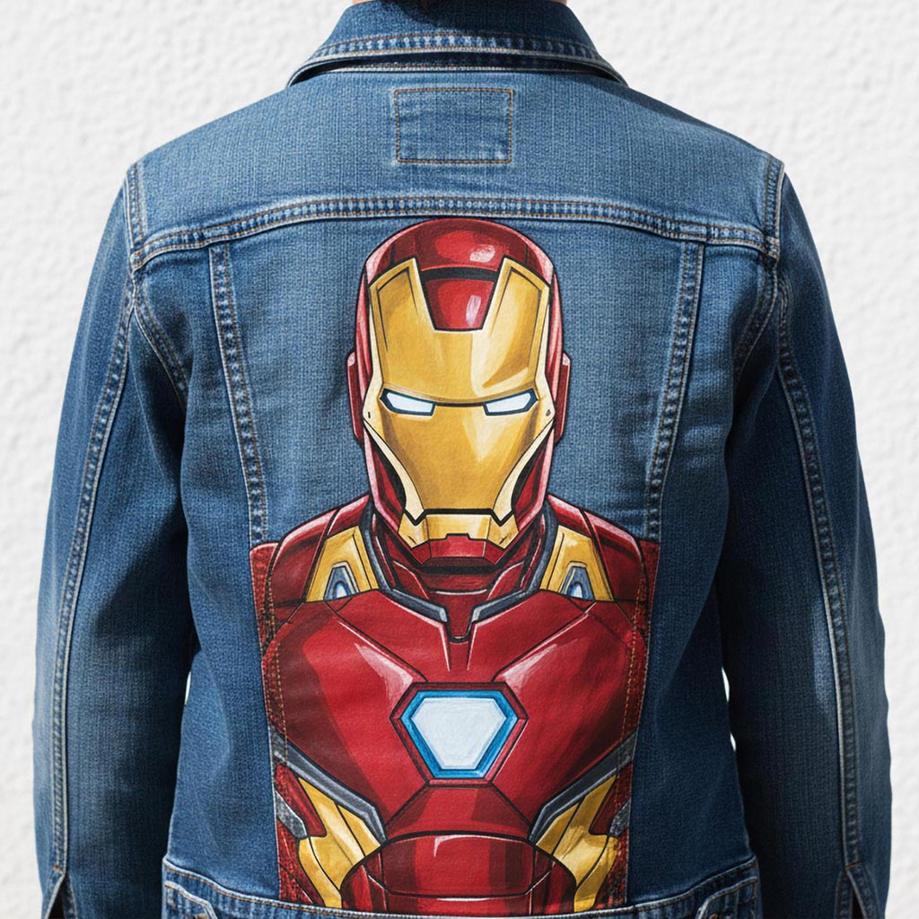 Veste en jean custom personnalisée « Iron Man »